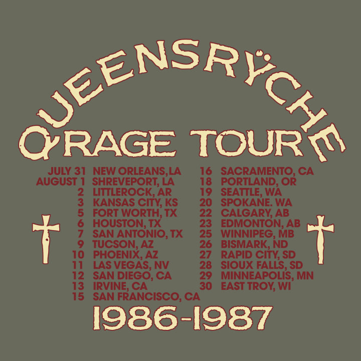 The Warning album cover graphic screen-printed on a vintage black t-shirt with retro 1984/85 tour dates on the back.